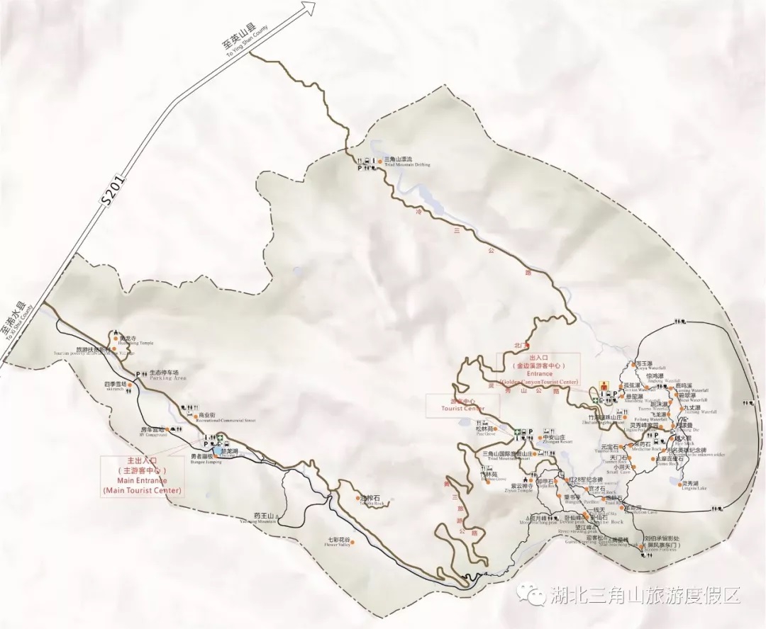推荐方案:参考起点(武汉火车站)→S7武鄂高速→S38黄鄂高速→201省道→湖北三角山停车场